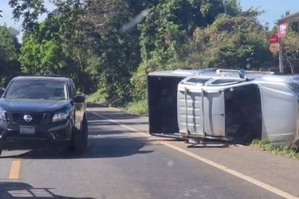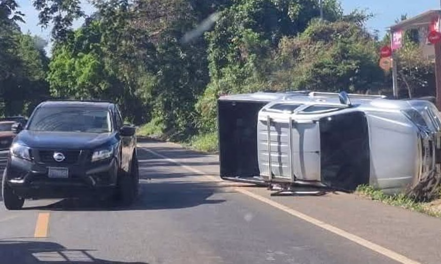 Un fuerte accidente de tránsito registrado en el by-pass de Ahuachapán dejó a dos conductores lesionados, según reportaron las autoridades.