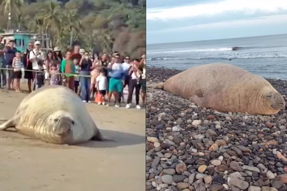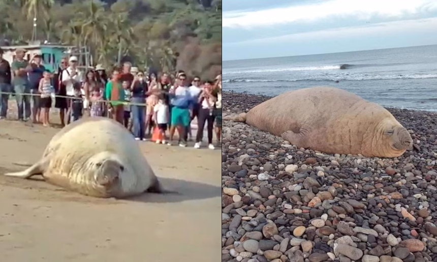 La presencia de un elefante marino en la playa Los Ayala, en…