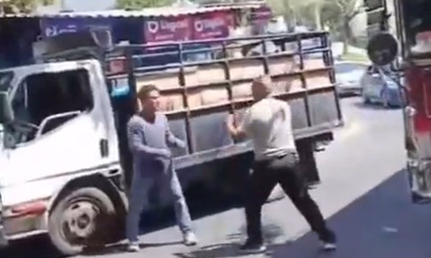 Un momento de tensión entre el conductor de un autobús y el de un camión fue captado en el distrito de San Marcos, en…