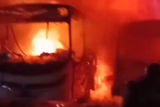Tres autobuses del transporte colectivo correspondientes a la Ruta 55 quedaron totalmente destruidos tras incendiarse de forma repentina la madrugada de este lunes en…