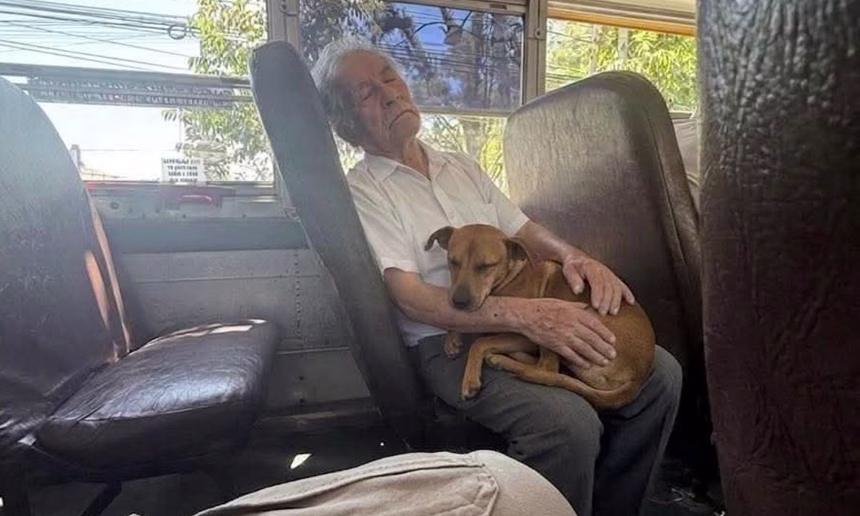 Un tierno momento se volvió viral en las últimas horas, luego de que un adulto mayor fuera visto viajando junto a su perrito en una unidad de la ruta 79, que recorre desde Lourdes Colón, en La Libertad, hacia San Salvador.