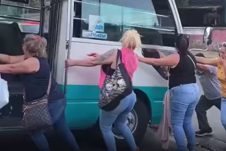 Mujeres dejan el “caché” a un lado para empujar coaster varada por falla mecánica