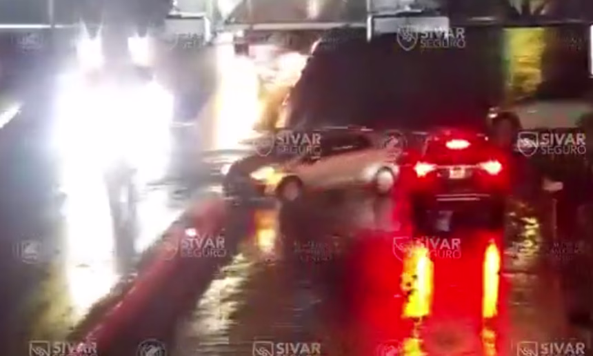 Un accidente de tránsito fue captado por las cámaras del sistema de videovigilancia Sivar Seguro en el Paseo General Escalón, en el Distrito Capital, donde un vehículo tipo sedán terminó impactando contra los separadores de concreto.