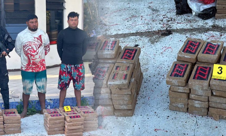 Como resultado del procedimiento, las autoridades capturaron en flagrancia a los salvadoreños Robin Eduardo Cruz Valle y Jonathan Alexis Cruz Valle, quienes enfrentarán cargos por el delito de tráfico ilícito.