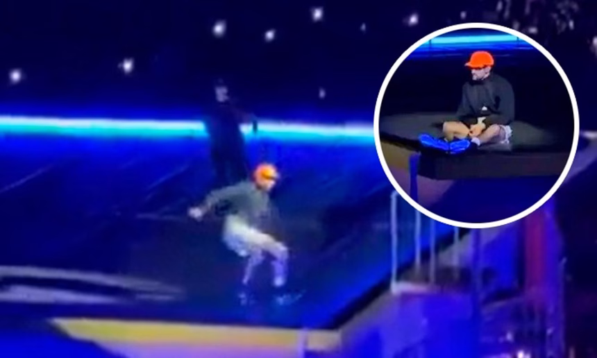 Mientras interpretaba “Efecto”, uno de los temas más reconocidos de Un Verano Sin Ti, el puertorriqueño perdió el equilibrio y cayó sobre una de las estructuras del escenario. Aunque la caída no pasó a más, el momento provocó una ola de reacciones entre los asistentes y en plataformas digitales, donde los videos circularon de inmediato.