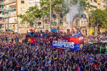 El Barcelona celebra el campeonato de Liga por las calles de la ciudad