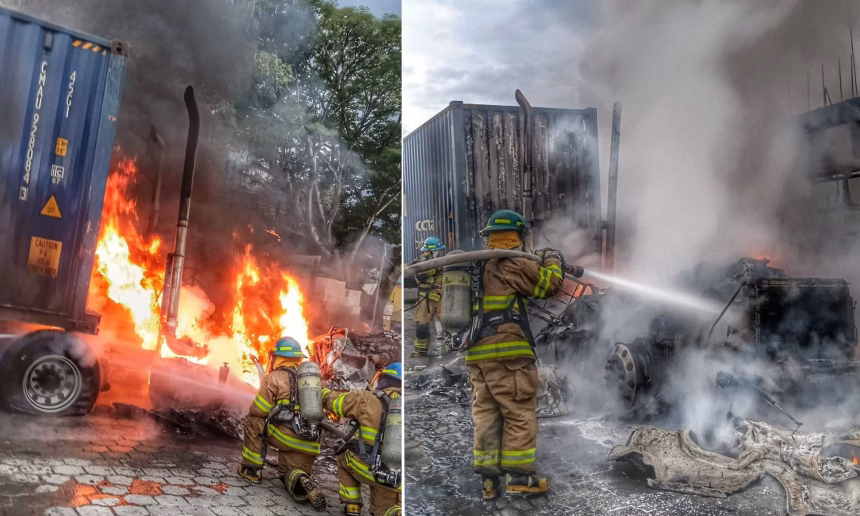 El cabezal de un tráiler terminó en cenizas tras incendiarse en plena marcha, la mañana del miércoles, en el departamento de Cabañas, informó el Cuerpo de Bomberos El Salvador (CBES).