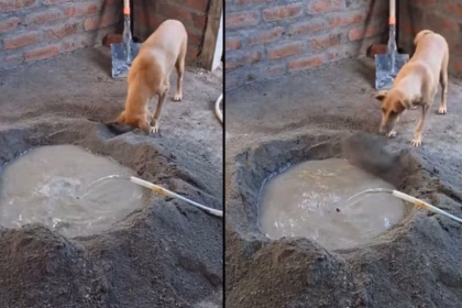 Perritos se refugian de la lluvia en un centro comercial de Santa Ana