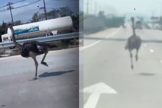 Avestruz suelto provoca momentos de tensión en autopista de Tailandia