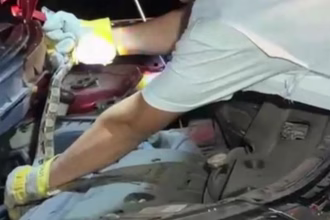 En las imágenes, que posteriormente se viralizaron en redes sociales, se observa al motociclista detenerse por unos segundos. Instantes después, un automóvil aparece en la escena y embiste a los ocupantes de la motocicleta.