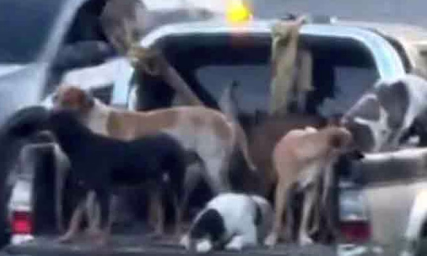 Una imagen difundida en redes sociales muestra a varios perros trasladándose en la parte trasera de un pick up que no cuenta con compuerta, lo que ha generado preocupación entre los usuarios.