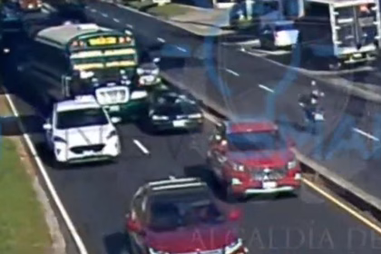 Personas que circulaban por el sector aprovecharon para grabar con sus celulares el acto de imprudencia de parte de la mujer, que no buscó el lugar adecuado.
