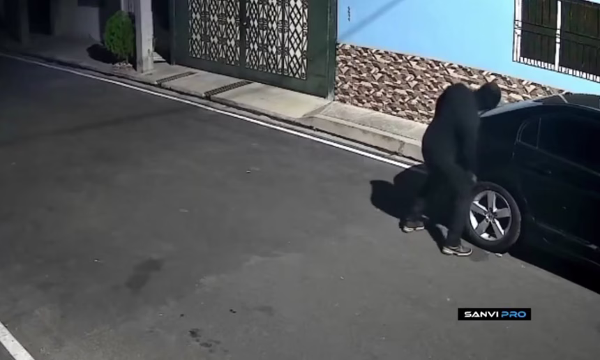 Un hecho vandálico quedó registrado en video en el departamento de San Vicente, donde un hombre fue captado dañando las llantas de un vehículo estacionado en la vía pública.