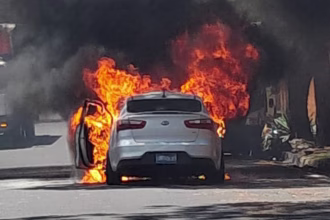 Vehículo se incendia mientras circulaba sobre la carretera Panamericana en Santa Tecla