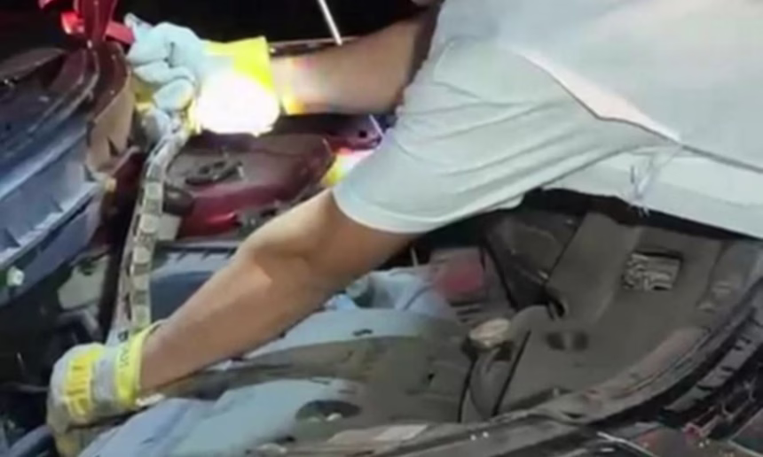 Al inspeccionar el automotor, el personal abrió el capó y logró extraer con precaución a la serpiente, la cual aparentemente se había refugiado en el motor en busca de calor.