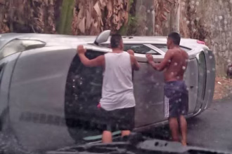 El hombre fue captado mientras conducía por la carretera de Oro, en un vehículo decorado con globos, luego de salir del centro hospitalario donde recibió su tratamiento.