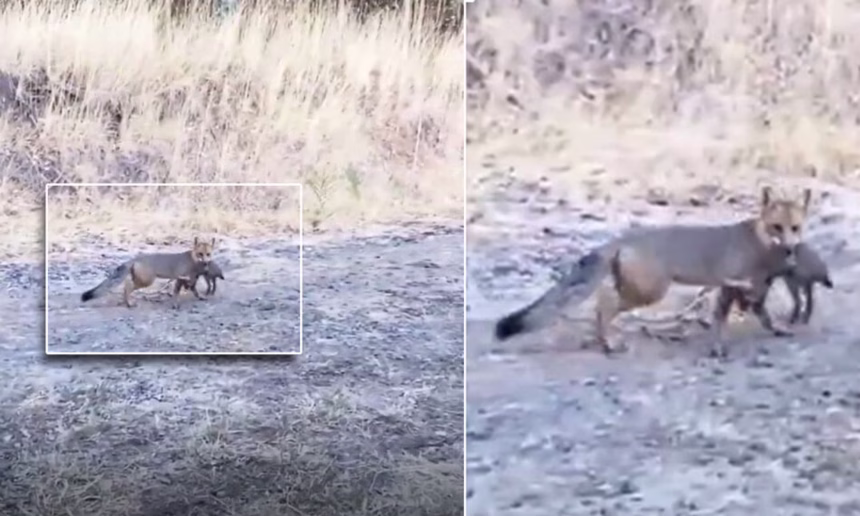 En las imágenes se observa al zorro con un conejo que habría cazado momentos antes, mostrando nerviosismo ante la presencia del humano. “Miren a este mapache, acaba de agarrar este conejo”, se le escucha decir en el video.