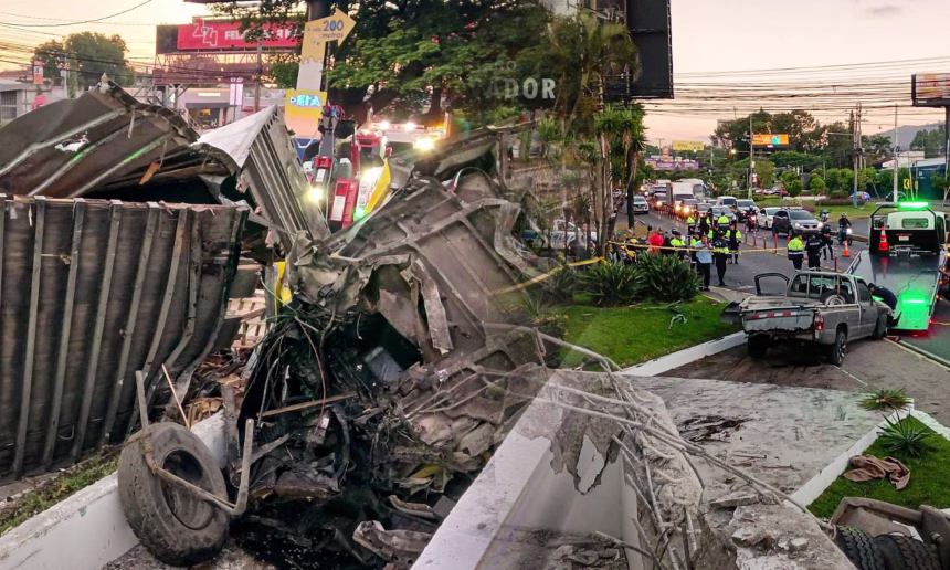 Los equipos de primera respuesta siguen trabajando en la inspección y retiro de escombros tras el accidente ocurrido esta mañana en el bulevar Los Próceres, en San Salvador.