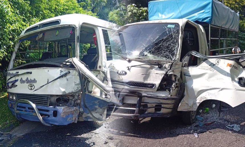 En el kilómetro 6 de la carretera que conduce a Planes de Renderos, un camión colisionó de frente contra un microbús de la ruta 17, dejando como resultado cuatro personas lesionadas.