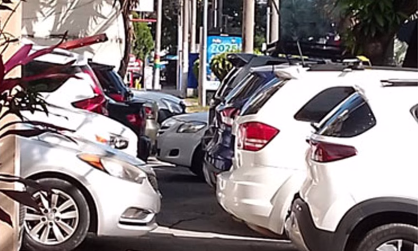 Según los denunciantes, varios conductores dejan mal estacionados sus vehículos en una zona transitada sobre la 73 avenida Norte, y avenida Olímpica, Colonia Escalón, San Salvador.