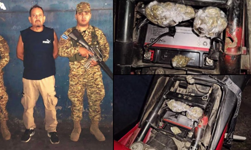 El detenido fue identificado como Herver Amílcar Rodríguez, quien fue intervenido por elementos de la Fuerza Armada cuando llevaba 21 porciones de marihuana escondidas debajo del asiento de su motocicleta, en la calle Celis, en San Salvador.