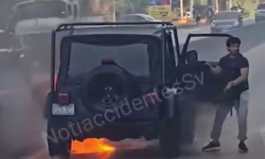 Difunden video del inicio del incendio que consumió vehículo en carretera al Puerto de La Libertad