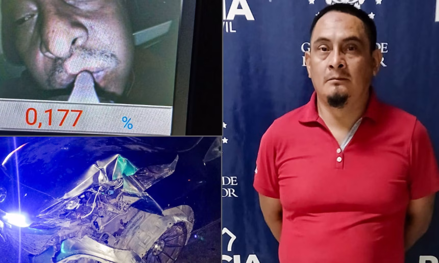 Horas más tarde, las autoridades lograron ubicarlo y someterlo a la prueba de alcotest, la cual arrojó un resultado de 177 grados de alcohol, confirmando que manejaba bajo los efectos de bebidas alcohólicas.