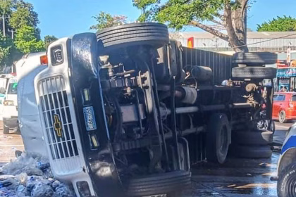 Difunden imágenes del momento en que camión de sodas se volcó rumbo al Puerto de La Libertad
