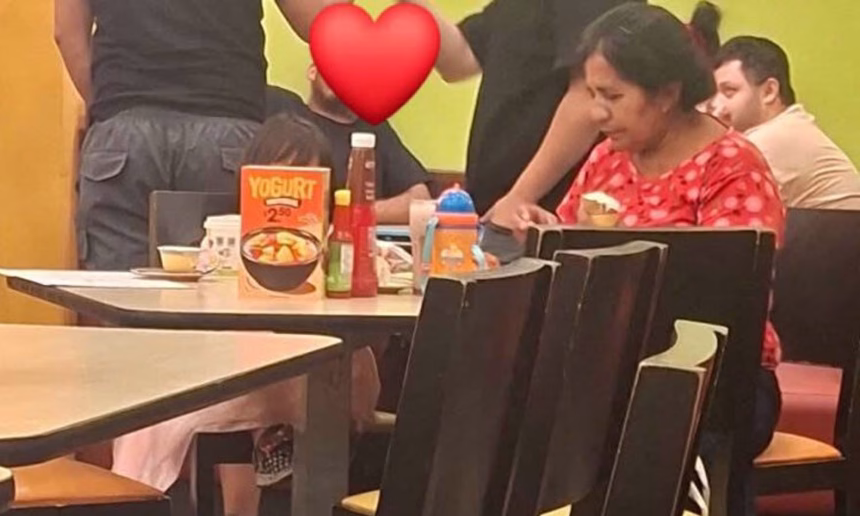 Una imagen que circula en redes sociales ha conmovido a numerosos usuarios, al mostrar a una mujer y una niña compartiendo una cena en un reconocido restaurante de pollo frito, gracias a un gesto solidario de sus empleados.