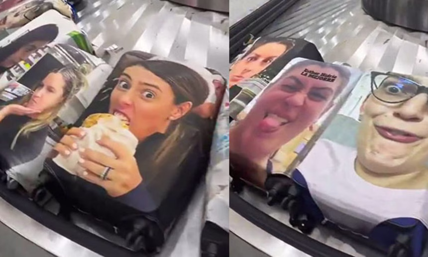 Según se relata, los integrantes estaban cansados de extraviar sus maletas durante sus viajes, por lo que decidieron implementar una idea fuera de lo habitual: colocar en cada equipaje fotos poco favorecedoras de cada miembro de la familia.