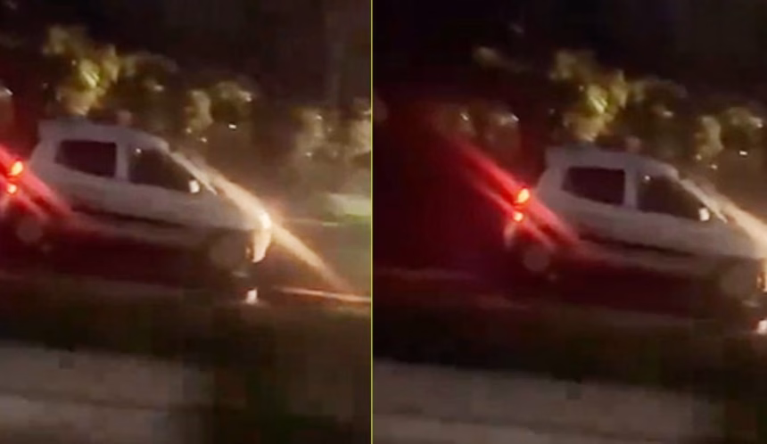 Debido a lo oscuro de la zona, la grabación no muestra detalles del número de placas del vehículo, tampoco del sujeto que lo manejaba.