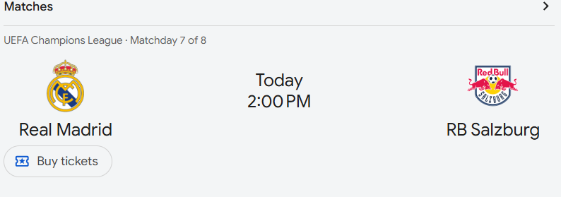 Los merengues juegan de local contra el FC Red Bull Salzburg. El partido está programado a las 2:00 de la tarde (hora salvadoreña).
