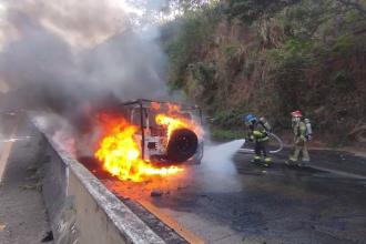 Vehículo es consumido por incendio en la carretera al Puerto de La Libertad