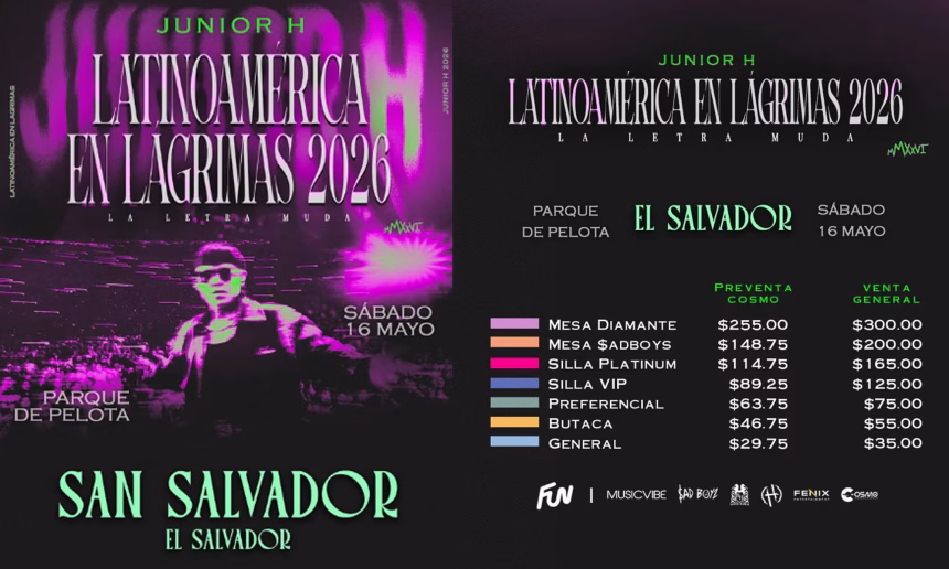 El exponente del regional mexicano contemporáneo, Junior H, volverá a territorio salvadoreño como parte de su nueva gira «LATINOAMÉRICA EN LÁGRIMAS $AD BOYZ TOUR – LATAM 2026».