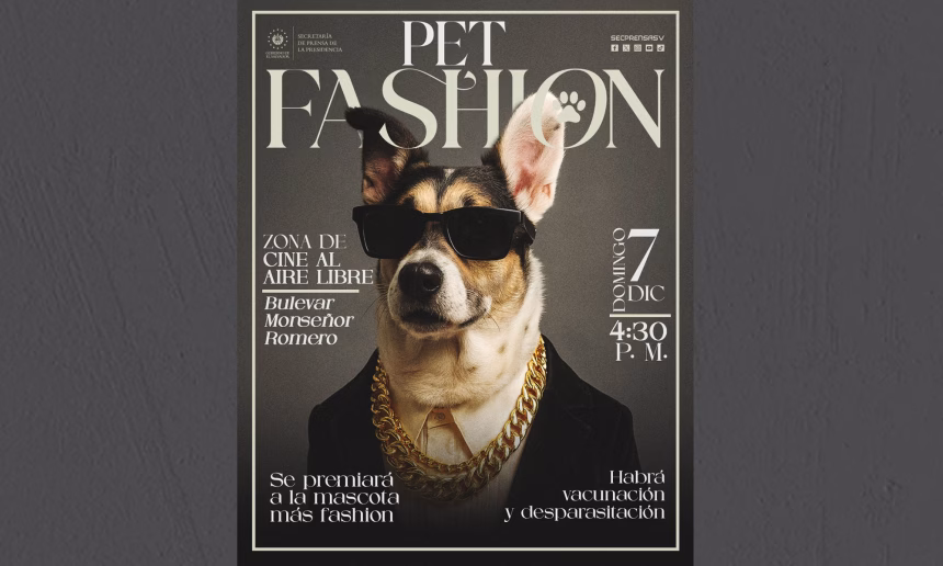 Se trata del #PetFashion, que se llevará a cabo el domingo 7 de diciembre en la zona del cine al aire libre, sobre el bulevar Monseñor Romero.