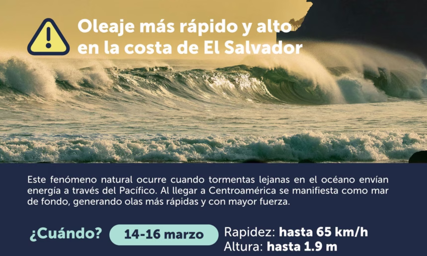 El Ministerio de Medio Ambiente y Recursos Naturales (MARN) informó que en las costas del país se mantiene un oleaje más alto y rápido de lo habitual debido a un evento de mar de fondo.