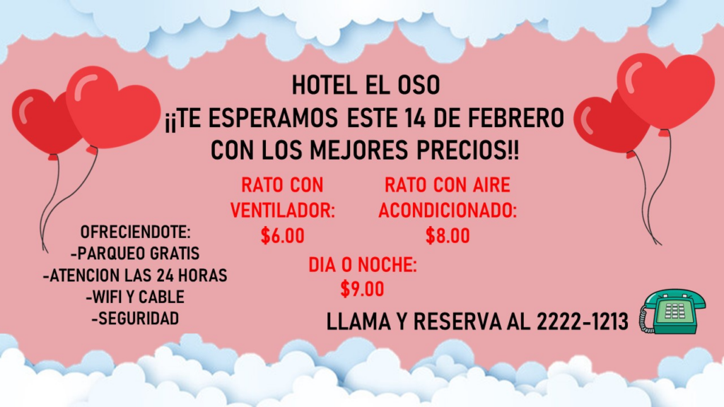 El motel más famoso de El Salvador anuncia a sus fieles clientes promociones especiales para el Día de San Valentín.