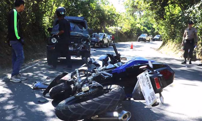 Un motociclista hondureño sufrió lesiones de consideración luego de chocar de frente contra un vehículo durante la mañana de este jueves, en el departamento de La Libertad.