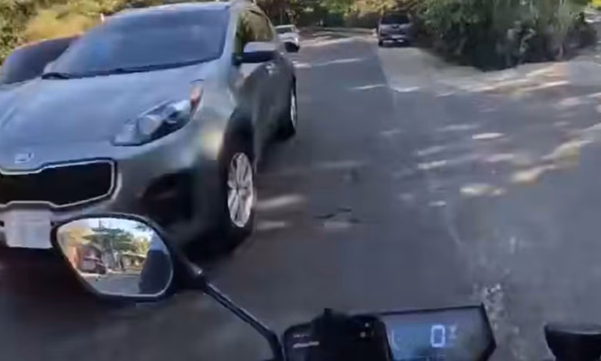 Un motociclista estuvo a punto de ser impactado por una camioneta que invadió su carril mientras intentaba adelantar.