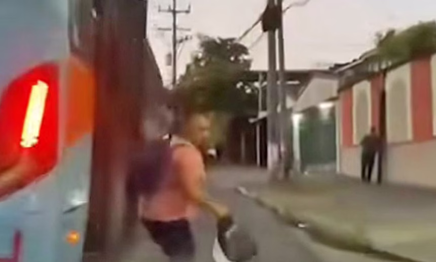Según se observa en un video difundido en redes sociales, el motociclista intentó adelantar la unidad por el lado derecho justo en el momento en que varios usuarios descendían del vehículo.