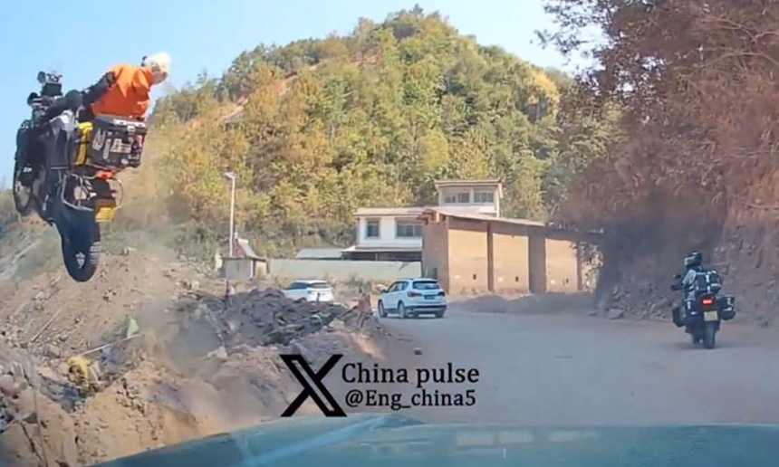 Un video que circula en redes sociales muestra el momento en que una mujer pierde el control de su motocicleta y termina cayendo a un barranco en China.