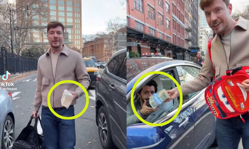 En el video que circula en plataformas digitales, se observa a MrBeast acercándose a los automóviles, introduciendo la mano en una bolsa y sacando un puñado de dinero que entrega directamente a los sorprendidos conductores, generando asombro y reacciones positivas entre los usuarios.