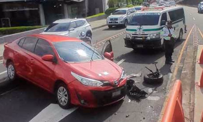 Una mujer resultó lesionadas tras accidentarse en el paso a desnivel de las Naciones Unidas, en Antiguo Cuscatlán, en sentido hacia la avenida Jerusalén.