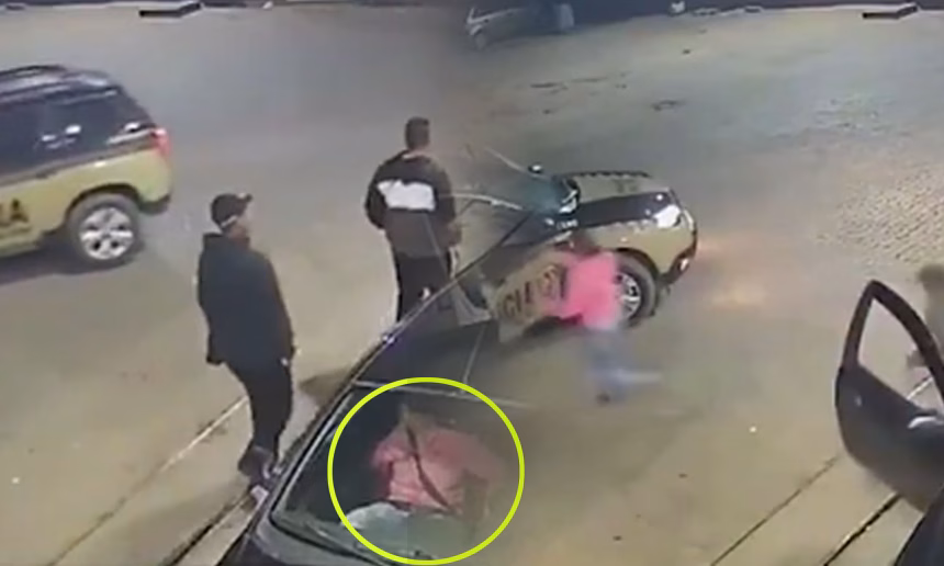 En Brasil se ha viralizado el video de una cámara de seguridad de una estación de servicio que grabó, el momento exacto en que una mujer escapó de un vehículo para correr a una patrulla de la policía.