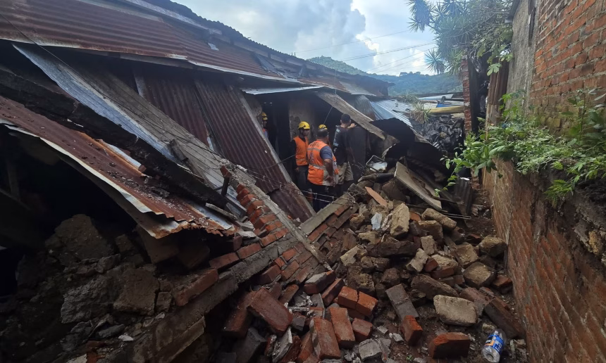 Tras las recientes e intensas lluvias registradas en el país en las últimas horas un muro colapsó, llevándose a su paso una vivienda.