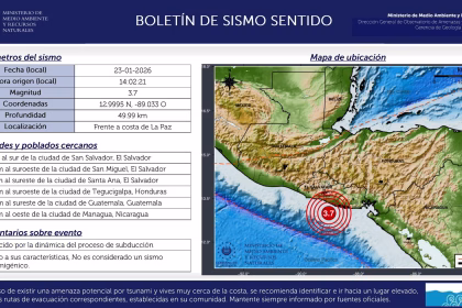 Sismo de magnitud 3.7 se registra frente a la costa de El Salvador este viernes