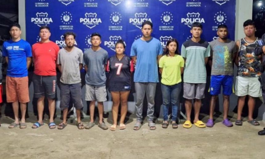 Los detenidos responden a los nombres de Bryan Alexis Ortiz Alvarenga, alias ‘Leiva’; Edward Jonathan González Campos, alias ‘Albañil’; Ángel Stanley Sánchez Solorzano, alias ‘Flaco’; Néstor Isaías Calvio Cruz, alias ‘Chivo’; Evelin Lizeth Castaneda Cabeza, alias ‘La Cangreja’; Juan Carlos Escobar Aguilar, alias ‘Calona’; Beralia Abigail Santos Ruiz, alias ‘Pelo Rubio’; Daniel de Jesús Salazar, alias ‘Conejo’; Franklin Vladimir Gutiérrez Guzmán, alias ‘Tachi’; Ángel Javier Peñate Leonardo, alias ‘Roquero’, y Cristian Alexander Hernández Castro, alias ‘Zope’.