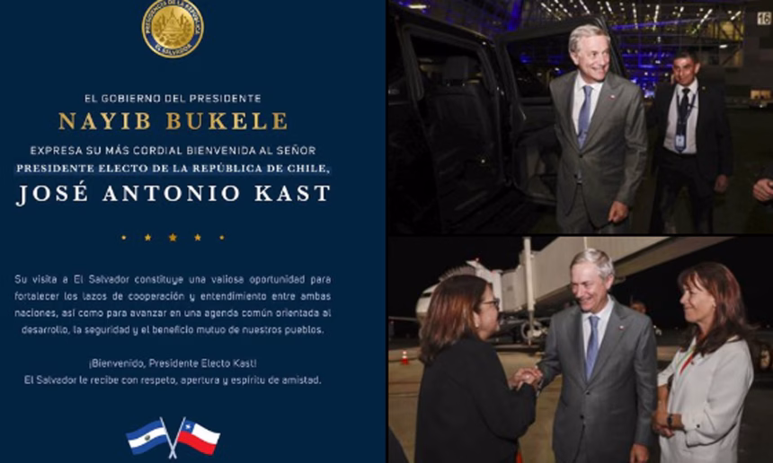 El presidente electo de Chile, José Antonio Kast, ya se encuentra en El Salvador como parte de una visita orientada a reforzar los vínculos de cooperación bilateral, especialmente en temas de seguridad.