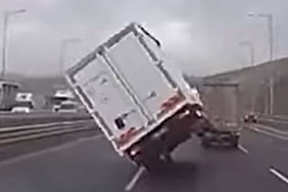 Fuertes vientos provocan volcadura de camiones en la Autopista Norte de Marmara, en Turquía
