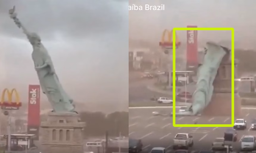 Guaíba, Brasil.– Una emblemática réplica de la Estatua de la Libertad, ubicada en la ciudad de Guaíba, colapsó tras los fuertes vientos registrados en medio del clima adverso que afecta a varias zonas del país.